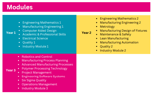 After 3 years: Obtain a Level 7 Bachelor of Engineering in Manufacturing Engineering.
