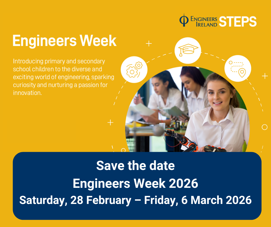 Engineers Week 2026 will take place from Saturday, 28 February – Friday, 6 March 2026. Resources and support materials for Engineering Organisations, Primary Schools, Secondary Schools, Libraries, Family Fairs, and Irish resources will launch in Autumn 2026.