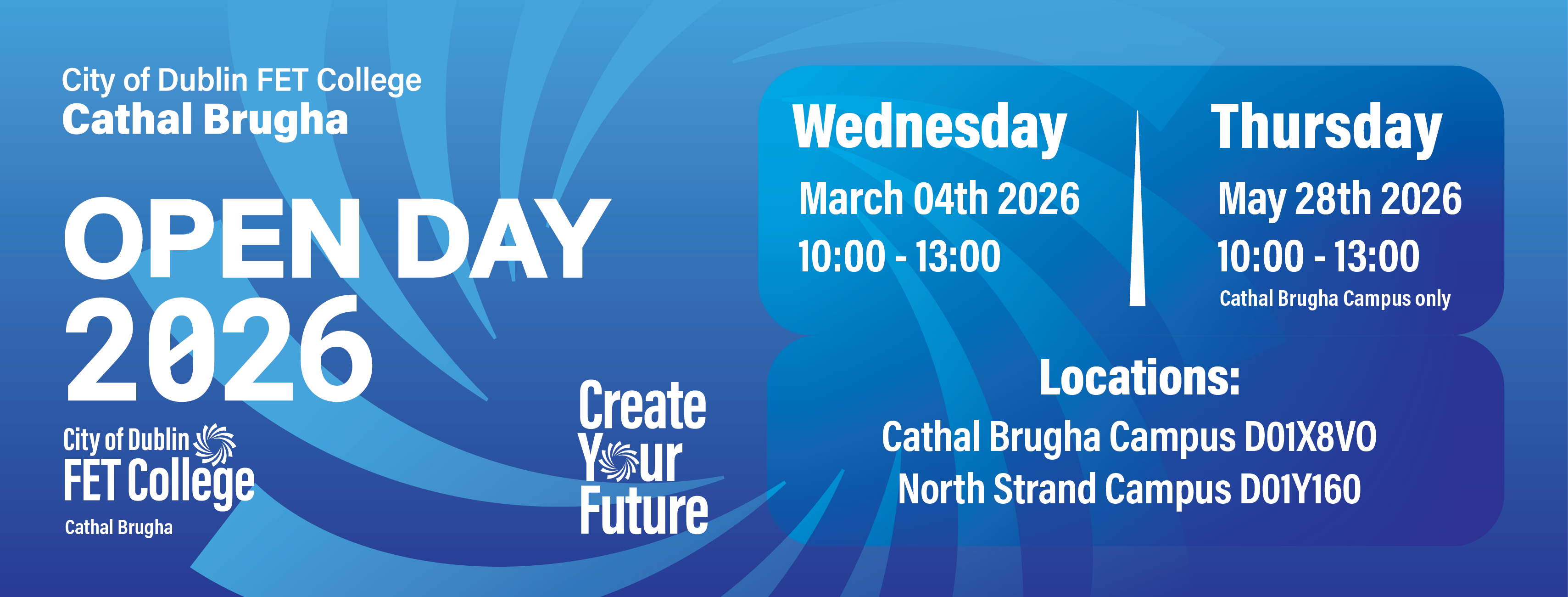 Cathal Brugha FET will be hosting Open Days in 2026. Details are: