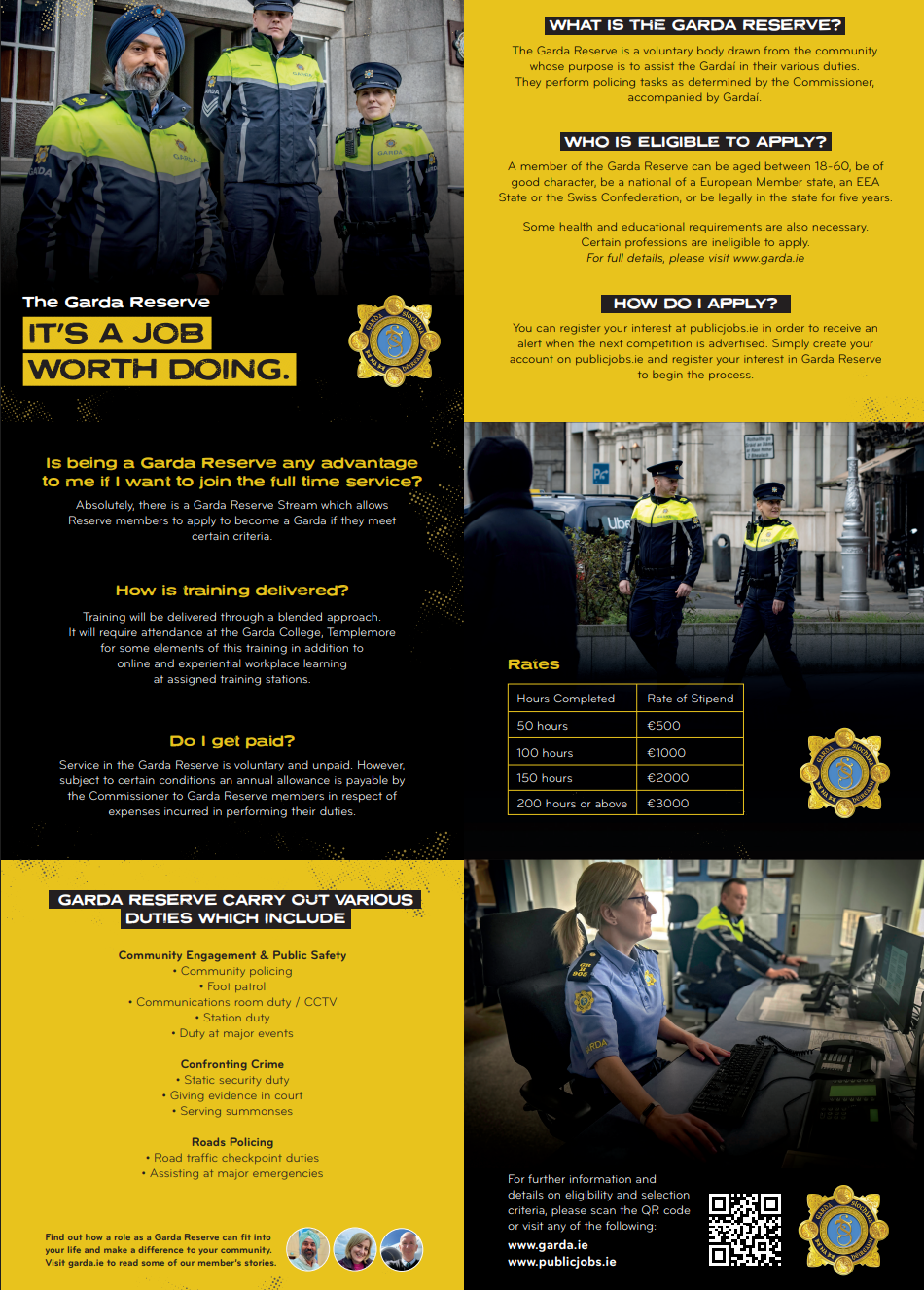 Many people interested in a full time career in An Garda Síochána have joined the Garda Reserve first to experience the role and see if it is the correct career choice for them.