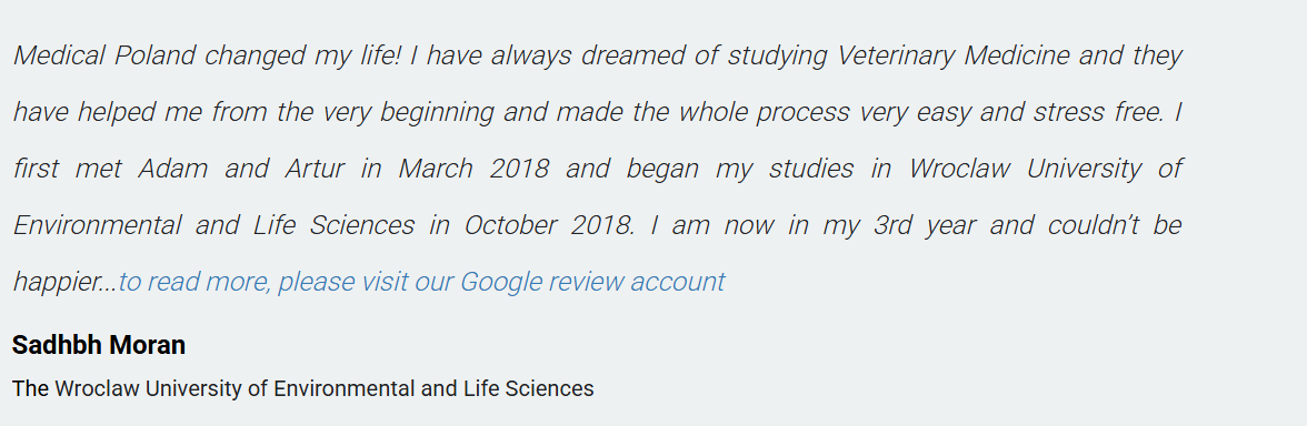 With Medical Poland's assistance it will make the process as clear and comfortable as possible. We list all the documents you need to prepare, we are on hand to answer any questions and we will support you with interview preparation and organising a tour of the university if you decide you would like to visit before commencing your studies.