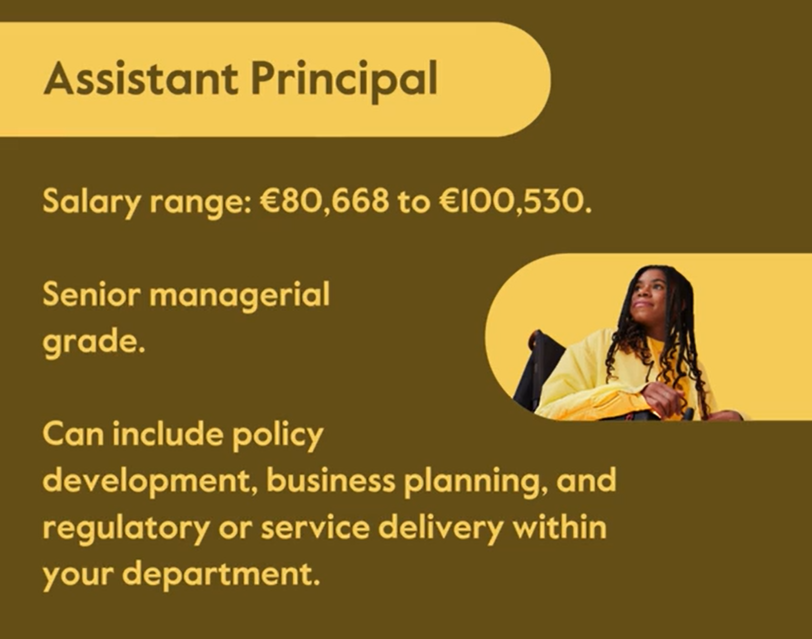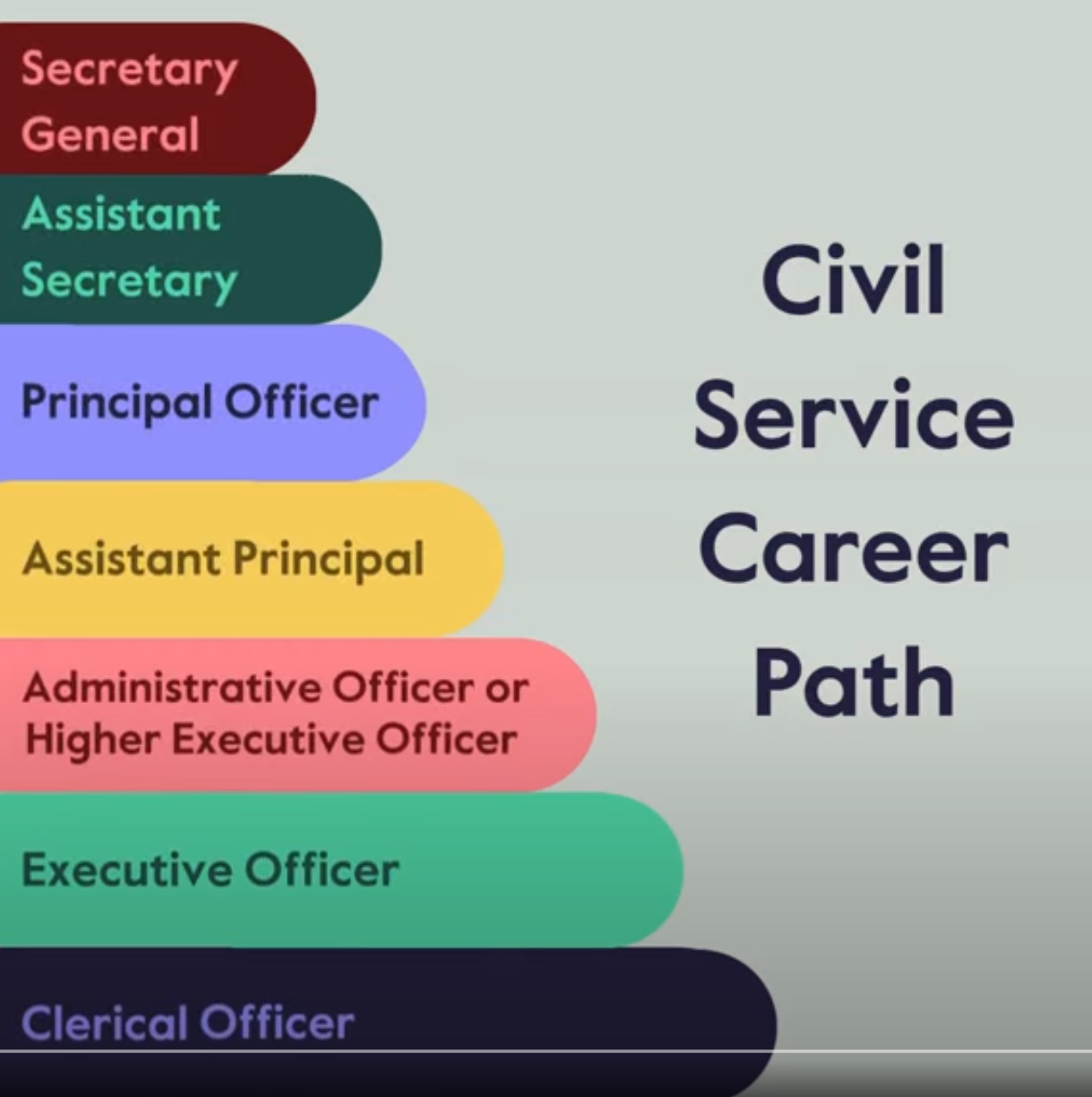 The entry level position in the Civil Service is usually at Clerical Officer, or at the junior management level of Executive Officer. Administrative Officer is the graduate entry role and Higher Executive Officer are middle management roles. Senior Management roles include Assistant Principal and Principal Officer, while Assistant Secretary and Secretary Generals are strategic leadership roles.