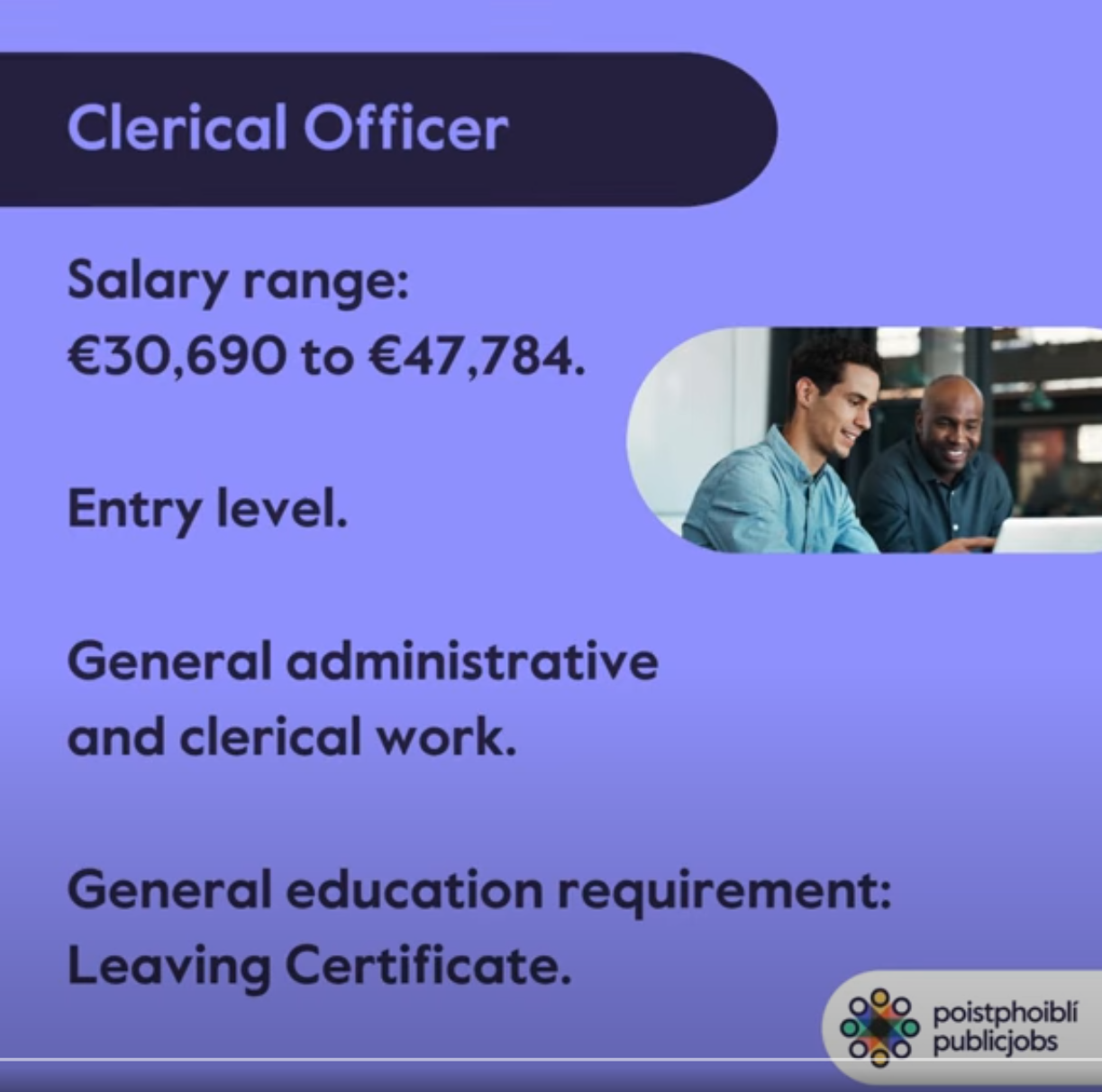 Clerical Officers work in all departments and agencies of the Government of Ireland, providing vital input to teams through a range of general office duties. Clerical Officers need a good general standard of education and a customer focused attitude. Promotional opportunities are available to all Clerical Officers when they are made permanent.