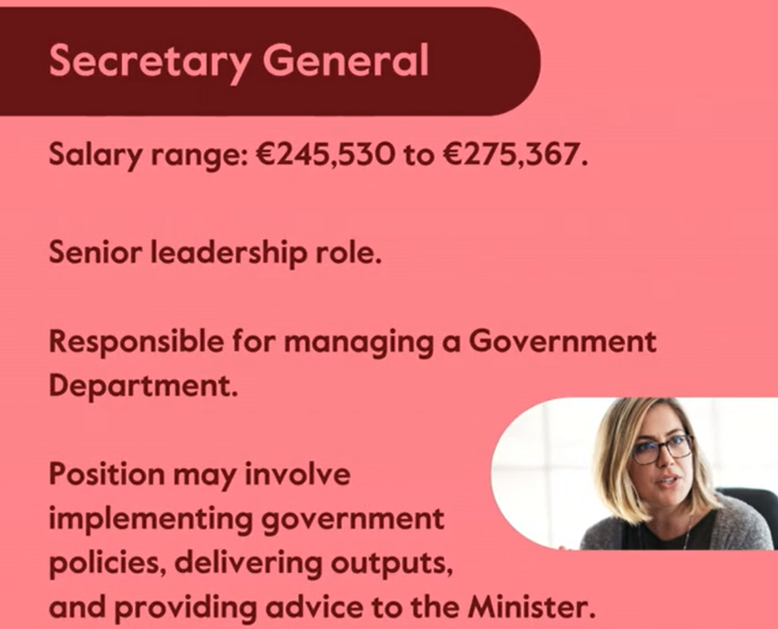Secretary Generals are responsible for managing the Department, implementing government policies, delivering outputs as determined with the Minister, providing advice to the Minister and using resources appropriately and assigning specific functions, for which the Secretary General is responsible, to officers or grades of officers within the Department.