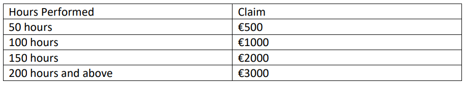 The Garda Reserve Annual Allowance claim is applicable on a graduated scale up to €3000 based on the number of hours completed in a calendar year